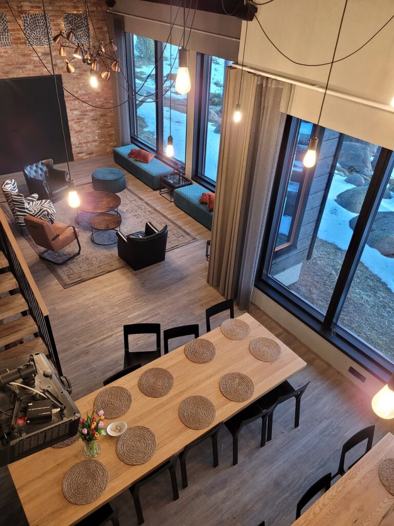 Leukamme loksahtavat auki, kun astumme sisään Villa Aavaan. Villa Aava on iso paritalo, jonne mahtuu juhla tai kokousväkeä jopa 100 henkilön verran ja majapaikkoja siellä on 18 hlölle.