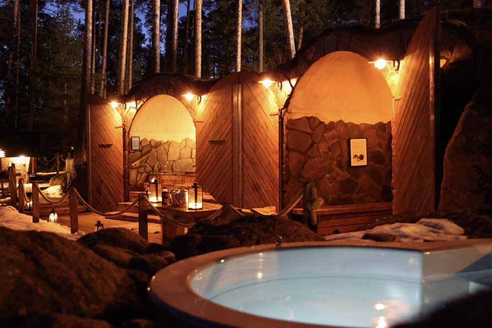 Yksi aktiviteetti jäi vielä mainitsematta ja se on Santalahden saunat. Saunat olivat pääkohteemme, mutta pääsimme sitä ennen tutustumaan muutamiin Santalahti Resortin majoitusvaihtoehtoihin.