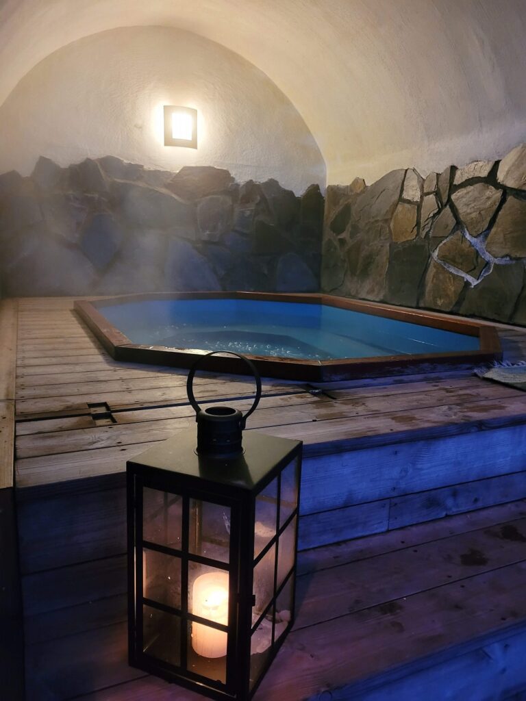 Santalahti Resortin saunamaailmassa on lämminvesiallas, kylmäallas, savusauna sekä lasikattoinen puusauna. Olin aivan haltioissani tällaisesta paikasta, mitkä maisemat saunoilta avautui! Tämä luolasaunamaailma olisi täydellinen paikka esimerkiksi polttareiden viettoon!