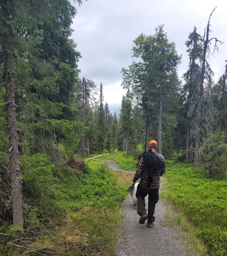 Pakollisen kuvaustauon jälkeen jatkoimme paluureitille, joka lähti melko pian laskeutumaan metsään. Aika pian tulee eteen kota, reitti on huomattavasti helpompaa ja leveämpää tällä paluureitillä. Kävely sujuu leikiten ja vauhti on alaspäin kuljettaessa reipas.