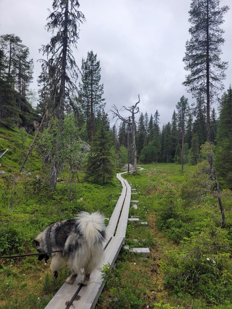 Metsässä on ilokseni myös pitkospuita ja reitin loppupuolella myös näyttävää kalliota ja rakkaa. Siinä missä olin muutamaa päivää aiemmin Syötteellä matkassa ilman suurempaa motivaatiota, oli Valtavaaralla niin paljon parempi fiilis. Pelkästään se antaa jo paljon, kun saa kivuta jonkun kukkulan päälle, nähdä kauas ja avaria maisemia.