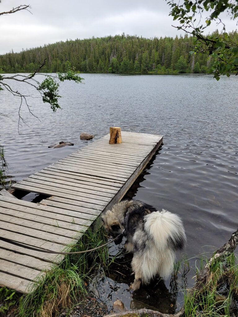 Nousua on alussa paljon, mutta kun ensimmäiselle taukopaikalle n. 1 km jälkeen pääsee, alkaa reitti jo helpottua. Sen jälkeen on vielä muutama nousu, mutta pahin on jo takanapäin. Taukopaikalla on iso grillikatos, siis oikeasti iso että sinne mahtuu suurempikin porukka. Pihapiirissä on lampi, laituri, nuotiopaikka ja käymälä.