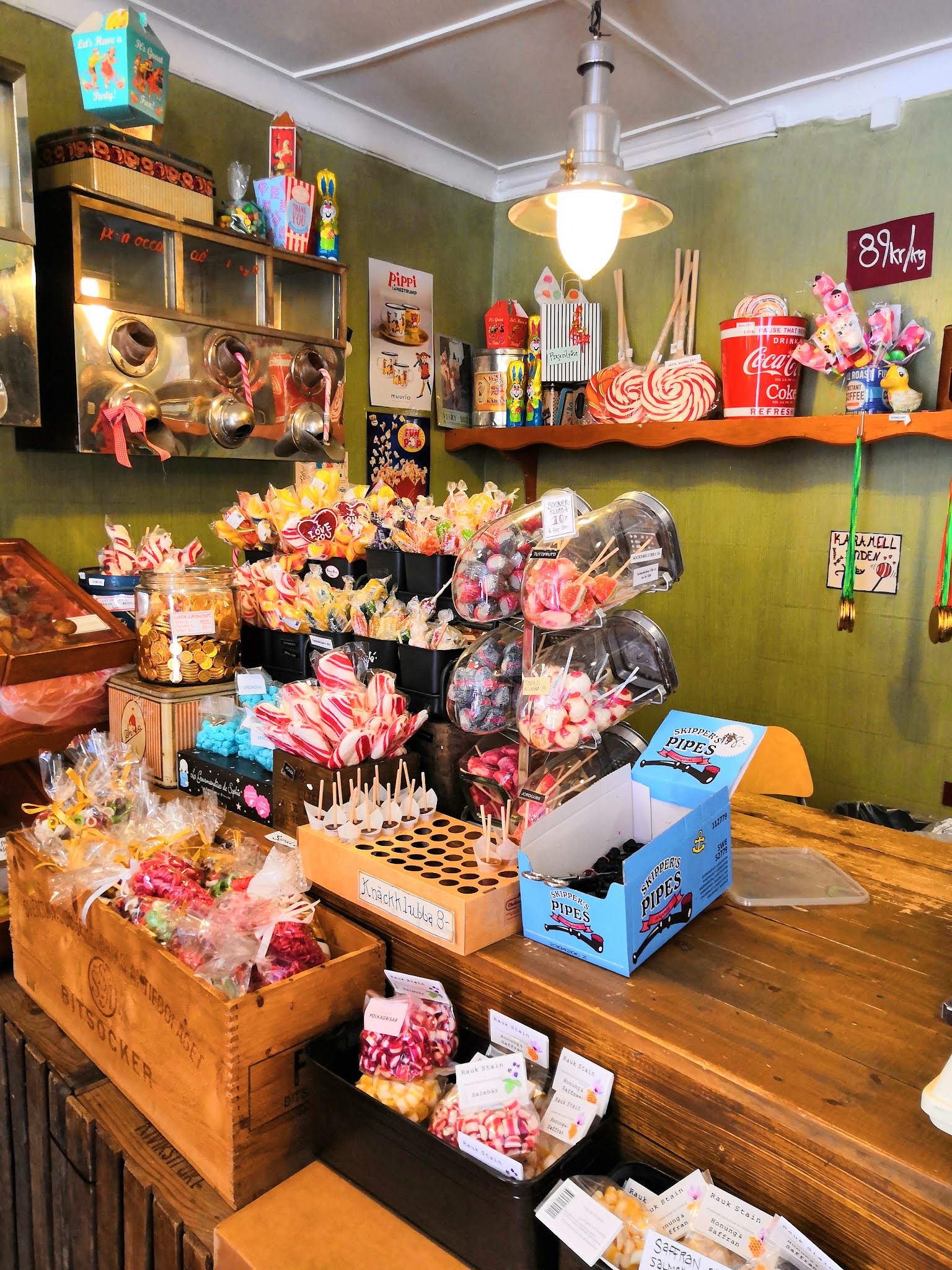 Nyt tätä postausta varten en kyseistä listaa enää löytänyt, joten lisään sen tähän mikäli sen myöhemmin vielä jostain löydän. Kiersimme siis yhden päivän ajan hissukseen ristiin rastiin kävellen näitä Peppi-sarjan kuvauksista tuttuja paikkoja läpi. Samalla tuli kaupunki muutenkin tutuksi, kun poikkesi vähän sivummalle. Pepin karkkikauppa jota ei enää ole, on sijainnut Fiskargrändillä.